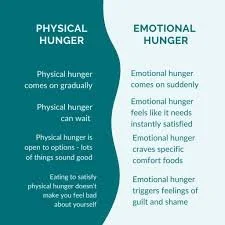Unlike physical hunger, emotional hunger isn’t satisfied by fullness. You can feel physically full but still want to keep eating because the emotion hasn’t been addressed.